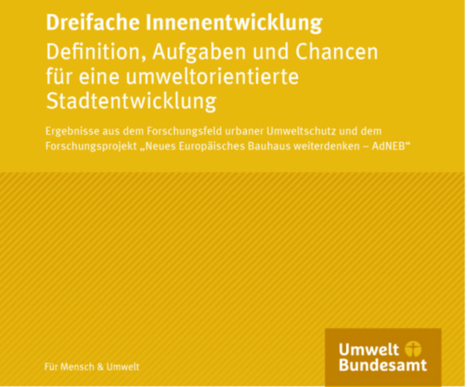 Nachhaltige Stadtentwicklung muss die vielen unterschiedlichen Ansprüche an den urbanen Raum auf begrenzter Fläche koordinieren. Eine multifunktionale und flächeneffiziente Siedlungs-, Verkehrs-, Frei- und Grünraumplanung ist ein zentraler Schlüssel für mehr Umwelt- und Lebensqualität in Städten. Das Leitbild der dreifachen Innenentwicklung bietet eine neue Perspektive auf räumliche Auf- und Verteilung von Flächen für Bauen, Mobilität und Grün, die den Anforderungen an eine lebenswerte und resiliente Stadt gerecht wird. Das Hintergrundpapier leistet einen Beitrag zum weiteren Verständnis des planerischen Leitbilds der dreifachen Innenentwicklung. Es richtet sich richtet sich an Kommunen und Behörden sowie die Wissenschaft.